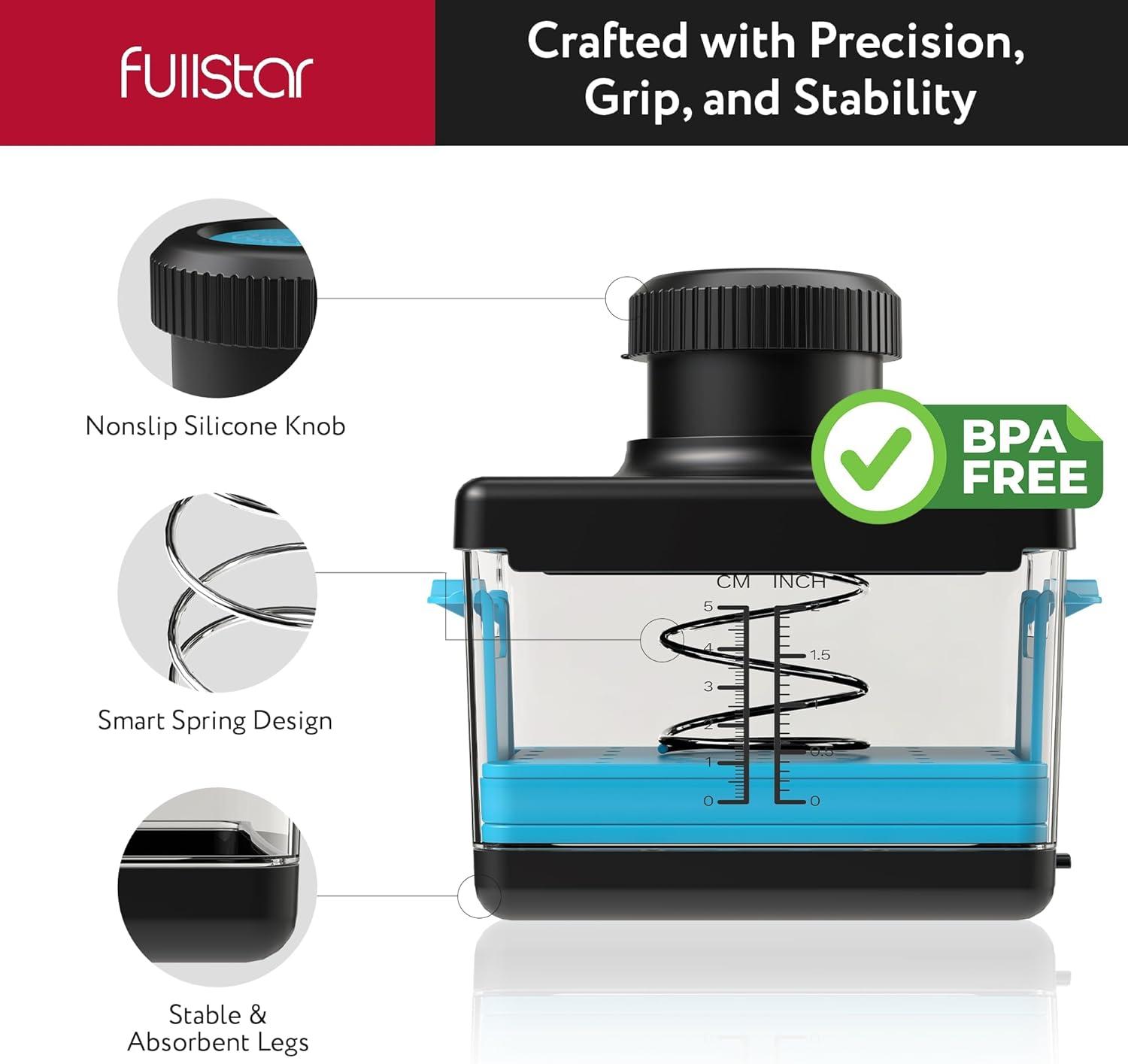 No-Mess Drainage Solution – The Fullstar tofu presser stops messes and soaking. The innovative silicone bumper with plug and drainage hole effortlessly removes excess liquid after pressing. A cleaner and more efficient tofu experience with no spills.