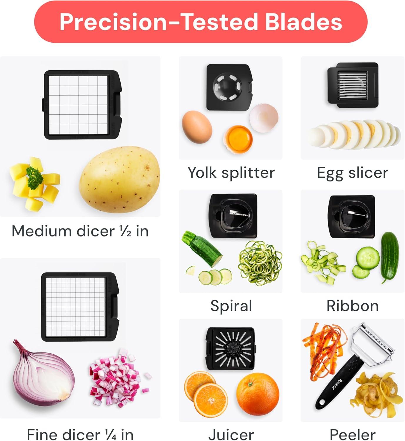 Fullstar The Original Pro Chopper - Vegetable Chopper and Spiralizer, Food Chopper with Container, Fruit Slicer, Kitchen Gadgets & Accessories, Home Essentials (4 in 1, Stainless Steel)(Black)