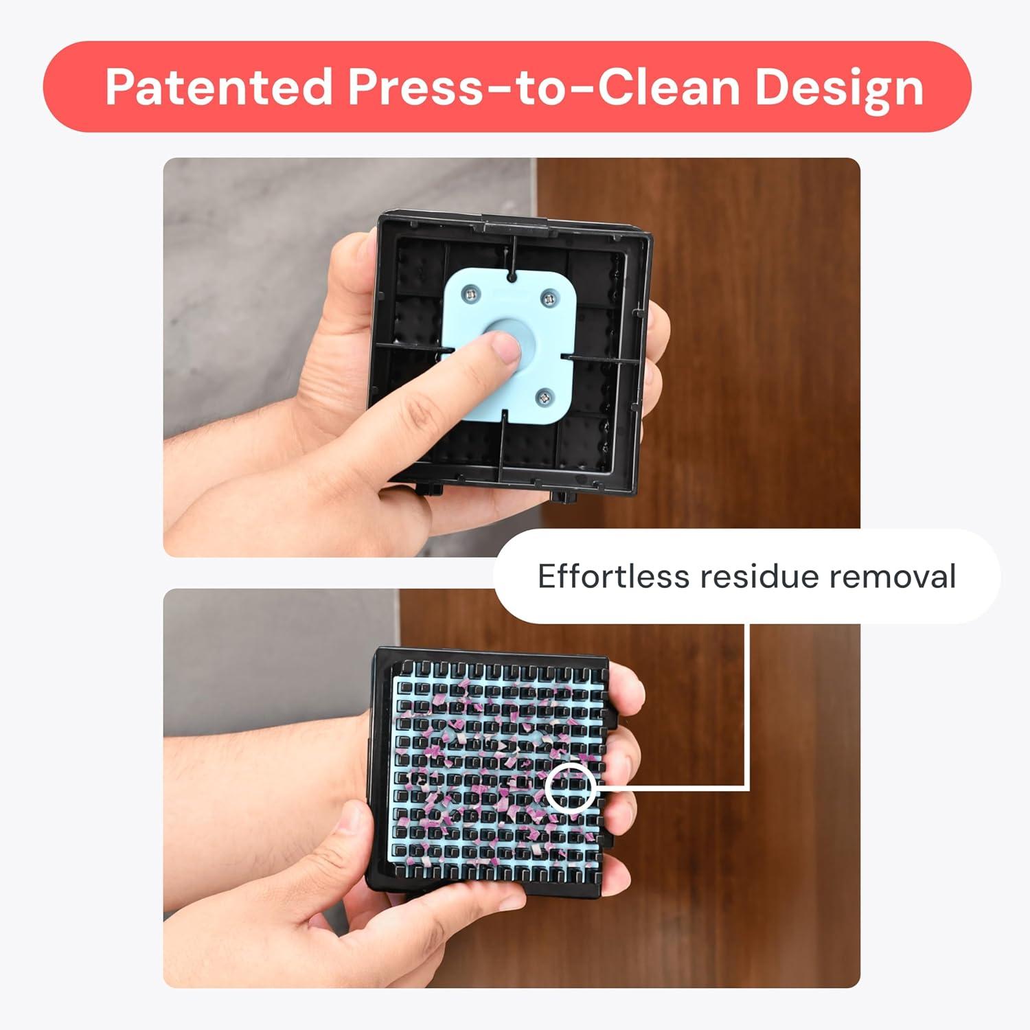 5-Star Design – The soft-grip TPU handle ensures controlled chopping, while the non-skid rubber base keeps the BPA-free veggie chopper steady on any surface, wet or dry. The built-in catch tray keeps counters clean and mess-free.