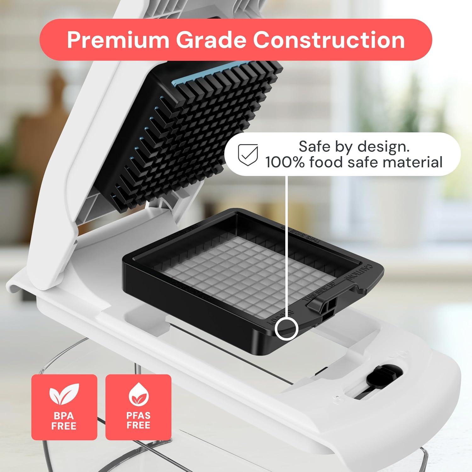 Easy Meal Prep with Rust-Resistant Blades – Our vegetable chopper is perfect for anyone who wants to eat healthier but doesn't have a lot of time to spare. Dice potatoes, tomatoes, cucumbers, carrots, and more with the heavy-duty, rust-resistant blades. The 420 stainless steel blades retain razor sharpness for crisp, smooth dicing.