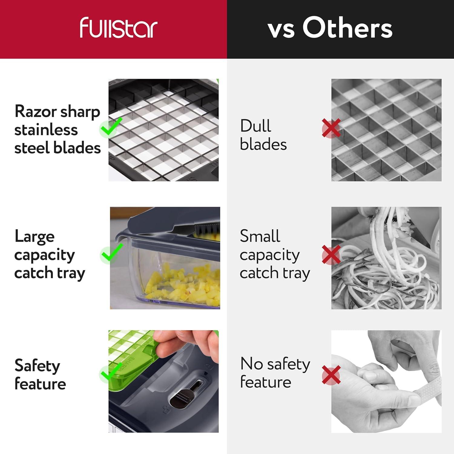 A Kitchen Essential – Whether you're a novice cook or a seasoned pro, the Fullstar Food Chopper is a must-have in any kitchen. t’s versatile and easy to use, making it perfect for low-carb and plant-based meals. From family dinners to holiday feasts, prep has never been easier!