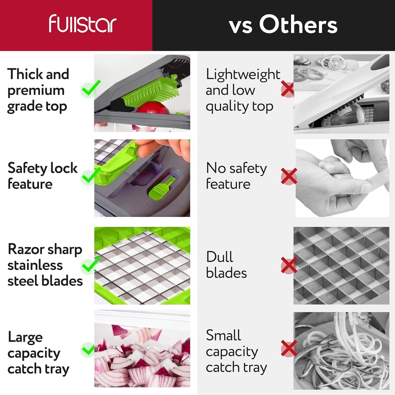 imageFullstar The Original Pro Chopper  Vegetable Chopper and Spiralizer Food Chopper with Container Fruit Slicer Kitchen Gadgets ampamp Accessories Home Essentials 9 in 1 WhiteGrayGreen